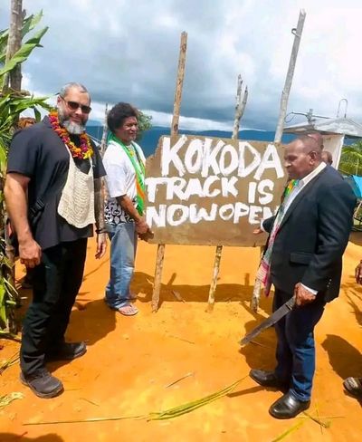 Hon. Garry Juffa, MP Governor for Oro Province and Hon. Beldan Namah, Minister for Tourism, Art & Culture reopening the Kokoda Track at Naoro Village
